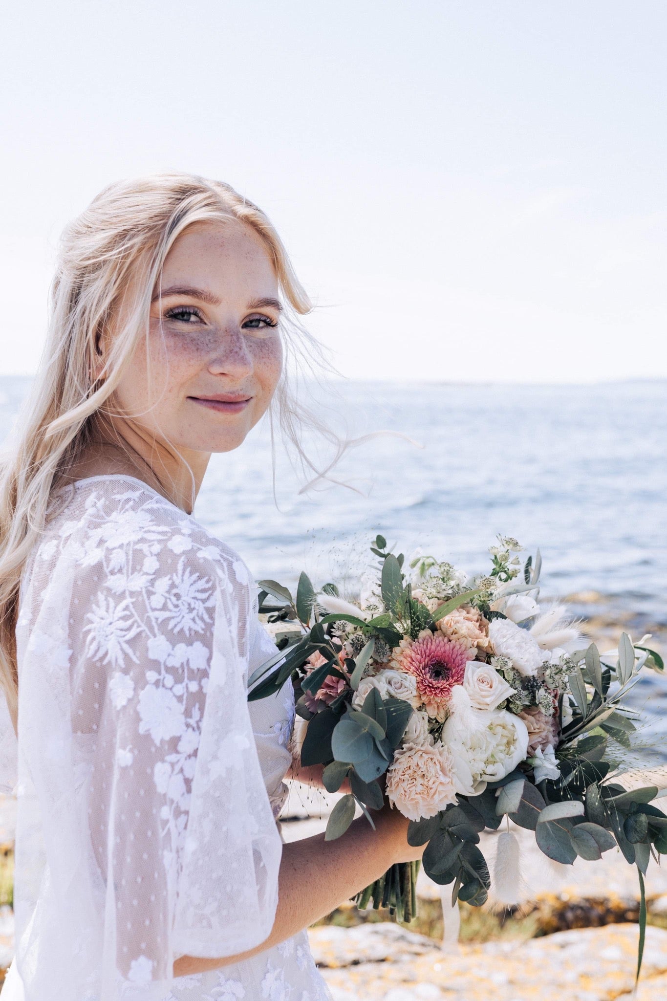 Brudbukett med en busighet och soft känsla med favoritblomman nejlikan i fokus då vi fick skapa till detta kära brudpar!